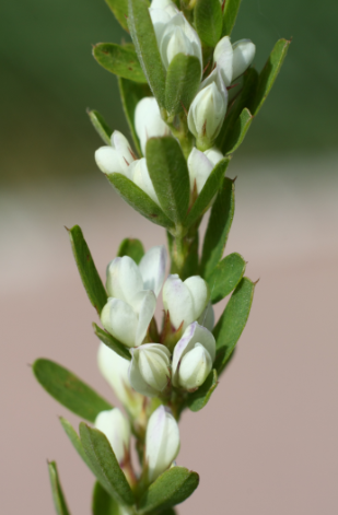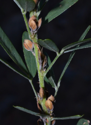 Sericea Lespedeza (Lespedeza cuneata) grows up to 5 ft, thrives in well-drained soil, full sun, moderate moisture, and is both edible and medicinal.