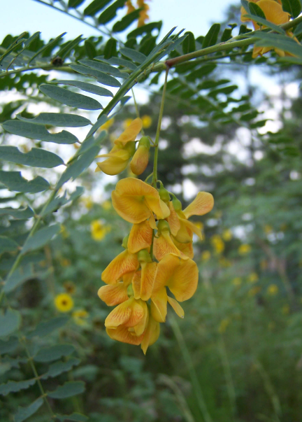 | Sesbania Rostrata (Sesbania rostrata) grows quickly to 8 ft, prefers moist loam, full sun, high moisture, and is medicinal but not edible. |