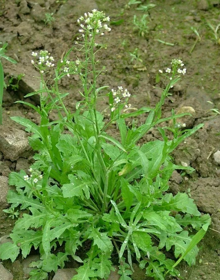 Annual herb to 0.6 m, Shepherd’s Purse yields peppery, edible leaves. European native, thrives in cool, sunny conditions. Edible and medicinal, ideal for salads.