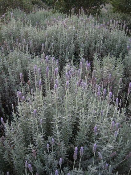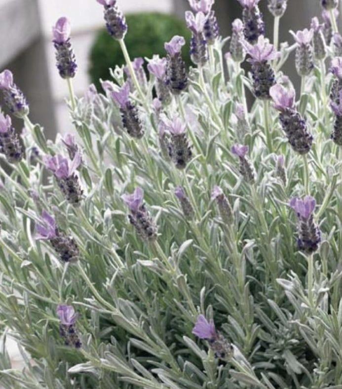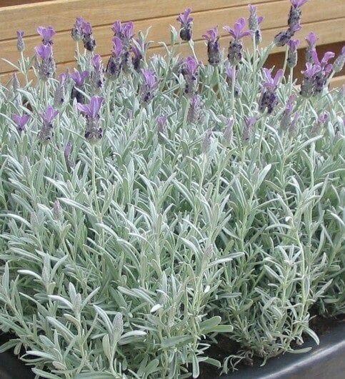 Lavandula stoechas 'Silver Anouk': While not a true lavender (it's a French lavender), 'Silver Anouk' has silvery-gray foliage and purple flowers topped with light purple bracts.