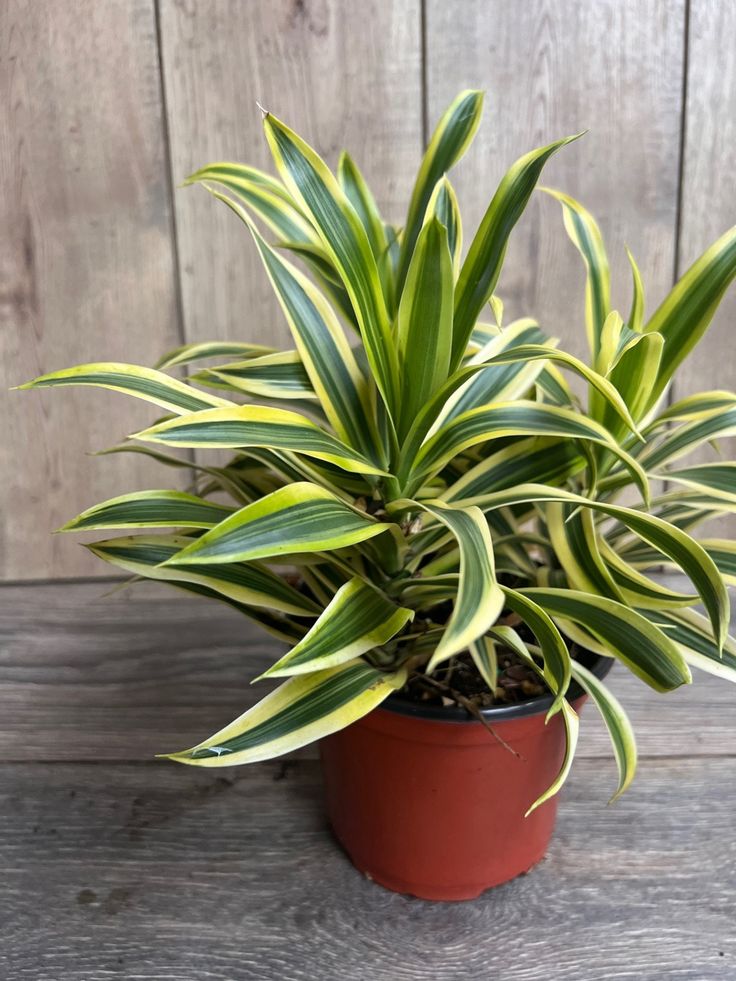 This variety has shorter, more compact leaves than the standard Song of India plant, making it a popular choice for indoor decoration.