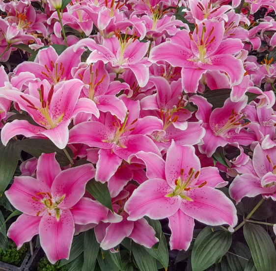 Sorbonne (Lilium 'Sorbonne'), a moderately growing Oriental lily hybrid, reaches 0.9-1.2 m in loamy soil under full sun to part shade, producing 5-12 fragrant pink flowers in mid to late summer with no edible or medicinal value.
