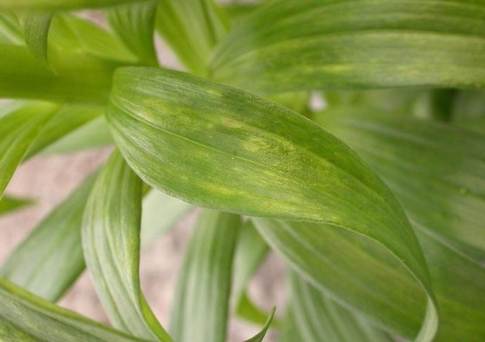 Mottled Or streaked yellow and green patterns on leaves, stunted growth, rotting bulbs, foul odour.
