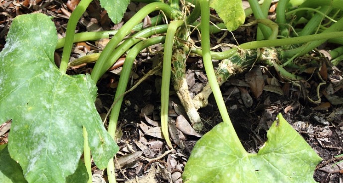 Maintain this steady growth by watering very thoroughly whenever its dry – squashes love moist soil and will respond accordingly. Remove any weeds that manage to poke through, and top up mulches using organic matter such as garden compost to help roots stay cool and moist