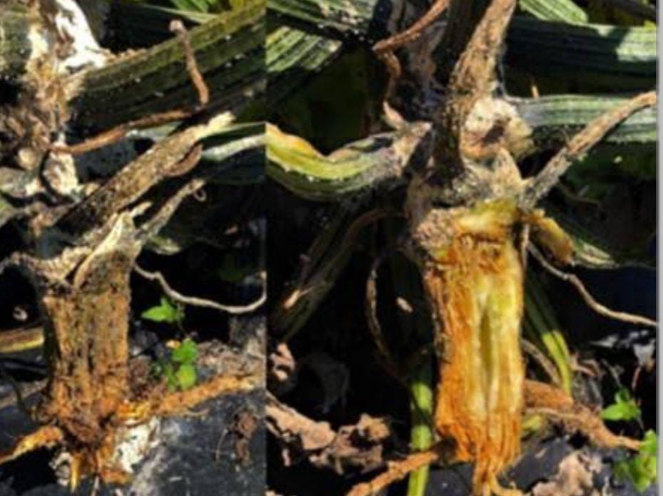 A common problem with summer squash is butt rot. The main symptom is dark dry rot on the floral ends of the fruit. Flower end rot is caused by a lack of calcium in the developing fruit.
