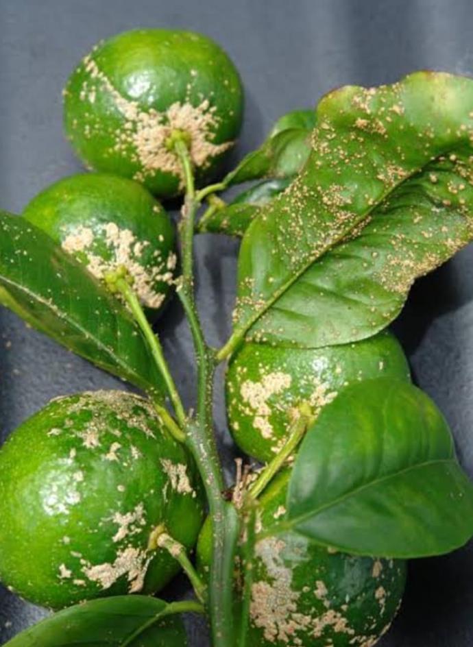 Lesions are circular with Yellow halo and Girdled and Die , Small Pale Orange Coloured Spots.