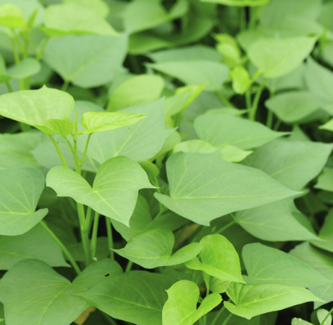 Perennial vine to 3 m, Sweet Potato yields edible, nutrient-rich leaves. South American native, thrives in heat. Edible and medicinal, ideal for stir-fries or soups.