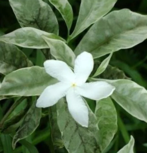 Tagar 'Central Charm' (Tabernaemontana divaricata 'Central Charm'), a South Asian evergreen shrub, grows 1.5-1.8 m with moderate growth in well-drained sandy-loam, thrives in full sun to partial shade, requires moderate watering, is non-edible with sedative and anxiolytic benefits, and produces year-round white flowers for versatile garden appeal.