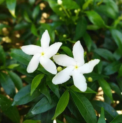 Tagar 'Forest Whisper' (Tabernaemontana divaricata 'Forest Whisper'), a South Asian evergreen shrub, grows 1.8-2.4 m with moderate growth in well-drained loamy soil, prefers partial shade with higher moisture, is non-edible with sedative and anxiolytic benefits, and produces year-round white flowers in lush, forest-like settings.