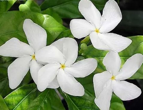 Tagar 'Himalayan White' (Tabernaemontana divaricata 'Himalayan White'), a South Asian evergreen shrub, grows 1.2-1.8 m with moderate growth in well-drained loamy soil, prefers partial shade with moderate moisture, is non-edible with sedative and anxiolytic benefits, and produces year-round bright white flowers suited for cooler regions.