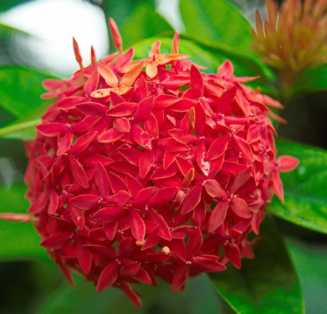 Tangerine Dream (Ixora 'Tangerine Dream'), a tropical evergreen hybrid shrub, grows 1.2-1.8 m with moderate growth in well-drained acidic soil, thrives in full sun with moderate to high moisture, is non-edible with no medicinal benefits, and produces tangerine-orange flower clusters year-round.