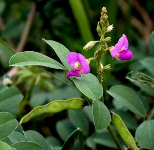 Tephrosia (Tephrosia purpurea), a perennial from Africa/Asia, grows 0.5-2 m in sandy loam with full sun, tolerates low moisture, and is non-edible but valued for anti-inflammatory and insect-repellent properties with infrequent watering and 5:10:10 NPK.