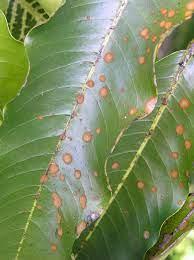 The early symptoms are small reddish-brown leaf spots which usually occur on younger foliage, and cause the leaves to look “rusty”