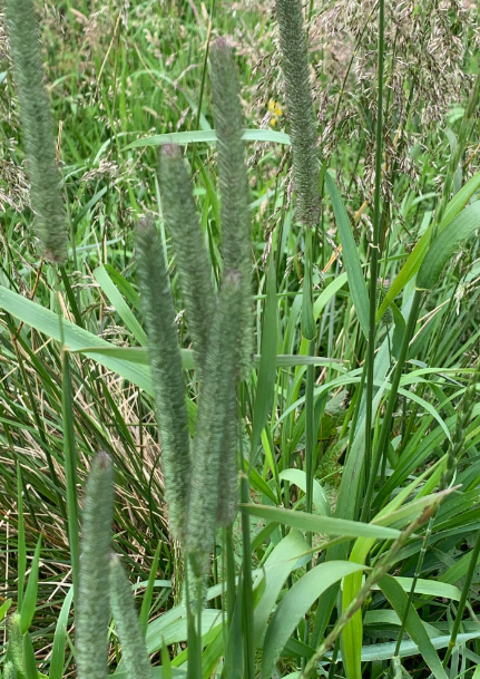Timothy Grass (Phleum pratense) grows up to 3 ft, thrives in loamy soil, full sun, moderate moisture, and is neither edible nor medicinal.