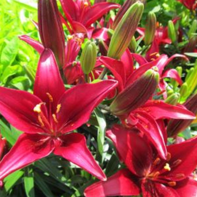Tiny Ghost (Lilium 'Tiny Ghost'), a fast-growing dwarf Asiatic lily hybrid, reaches 0.3-0.5 m in loamy soil under full sun to part shade, producing 3-6 deep purple-red flowers in early summer with no edible or medicinal value.