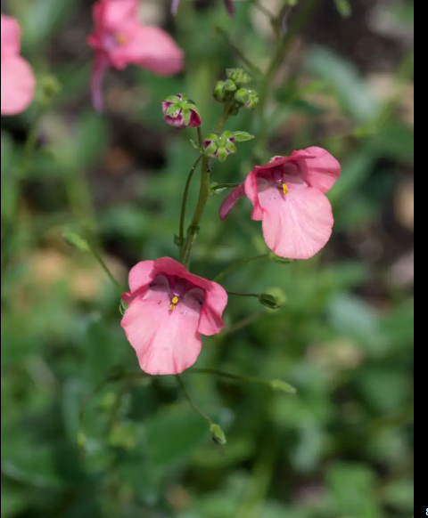 Twinspur (Diascia) is a perennial that grows 1-2 ft tall, hardy in USDA Zones 9-11, prefers well-drained, loamy soil, full sun to part shade, medium moisture, and has no edible or medicinal uses.