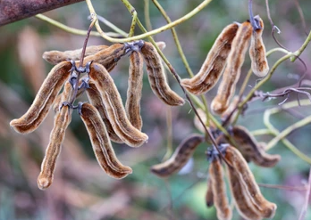 | Velvet Bean (Mucuna pruriens) grows up to 10 ft, thrives in well-drained, loamy soil, full sun, moderate moisture, edible and medicinal. |