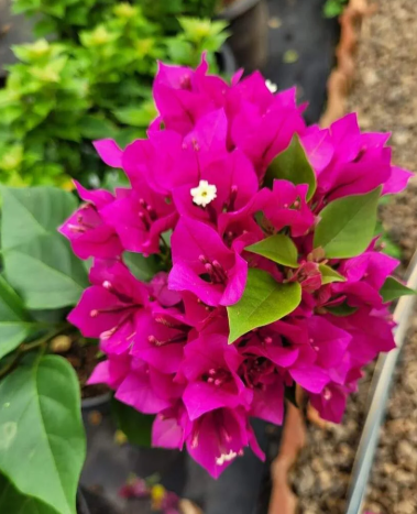 Shrubby, bushy habit with intense purple bracts, ideal for containers or landscapes.