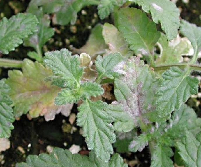 Roots get mushy and smelly, White powder appears on the upper side of the leaf.