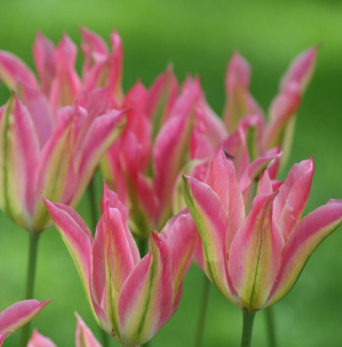 Perennial bulb to 0.6 m, Viridiflora Tulips feature green-streaked petals in long-lasting blooms, flowering late spring. Dutch in origin, they grow in full sun, well-drained soil with moderate water, ideal for temperate climates. Non-edible, non-medicinal, they add unique color to beds.