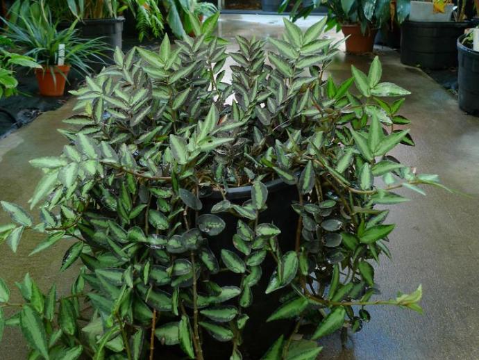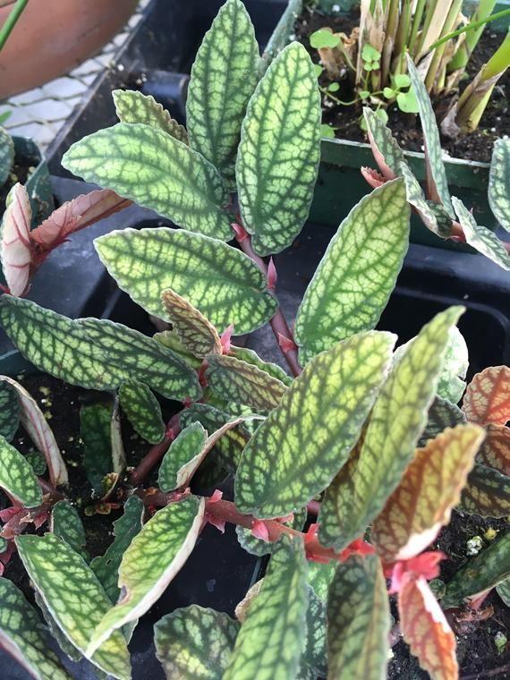 | The Watermelon Begonia is a compact plant known for its unique leaf markings resembling watermelon skin. It thrives in well-draining, loamy soil and moderate light. It is typically grown for its decorative foliage. |