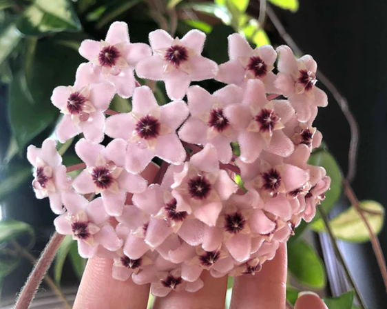 The Wax Plant, also known as Hoya, has thick, waxy leaves and fragrant flowers. It grows well in bright light and requires occasional watering.