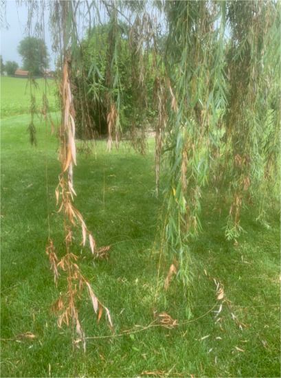| Weeping Willow (Salix babylonica) grows up to 50 ft, prefers moist soil, full sun, high moisture, and is neither edible nor medicinal. |