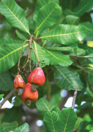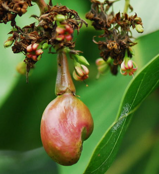 Anacardium occidentale, or Wild Cashew, is a hardy tree growing 5-15m, prefers sandy, well-drained soil, full sun, and produces edible fruits with medicinal properties.