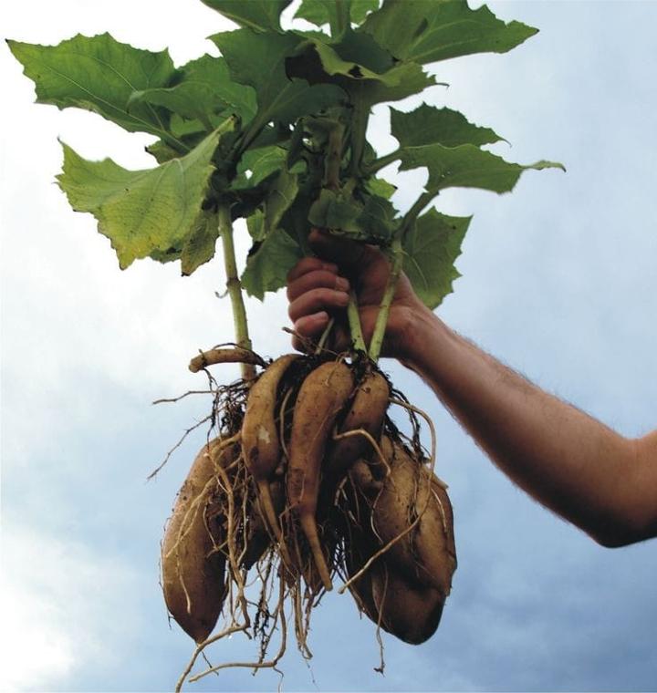 Yakon, a perennial, grows in well-drained, fertile soil and partial shade to full sun. It's frost-sensitive and benefits from regular watering.