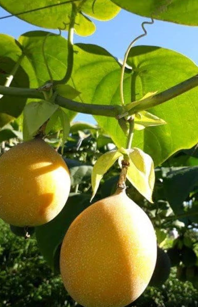 Passiflora edulis, or Yellow Passion Fruit, is a fast-growing vine reaching 1-5m, prefers loamy, well-drained soil, full sun, and produces edible fruits with medicinal properties.