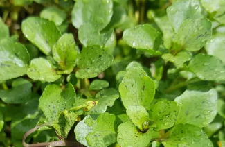 Yellow Watercress (Rorippa palustris) grows up to 3 ft, thrives in wet soil, full sun, high moisture, and is edible but not medicinal.