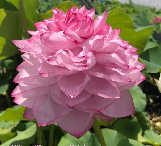 A dwarf lotus with peach-pink blooms, ideal for small ponds with edible parts and delicate aesthetics.